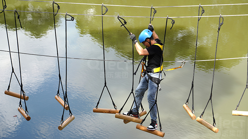 將叢林穿越與水元素結合!穿梭于樹冠之間,架設于田園水系之上,游客在水面上穿越,體驗“水上輕功”的獨特樂趣。