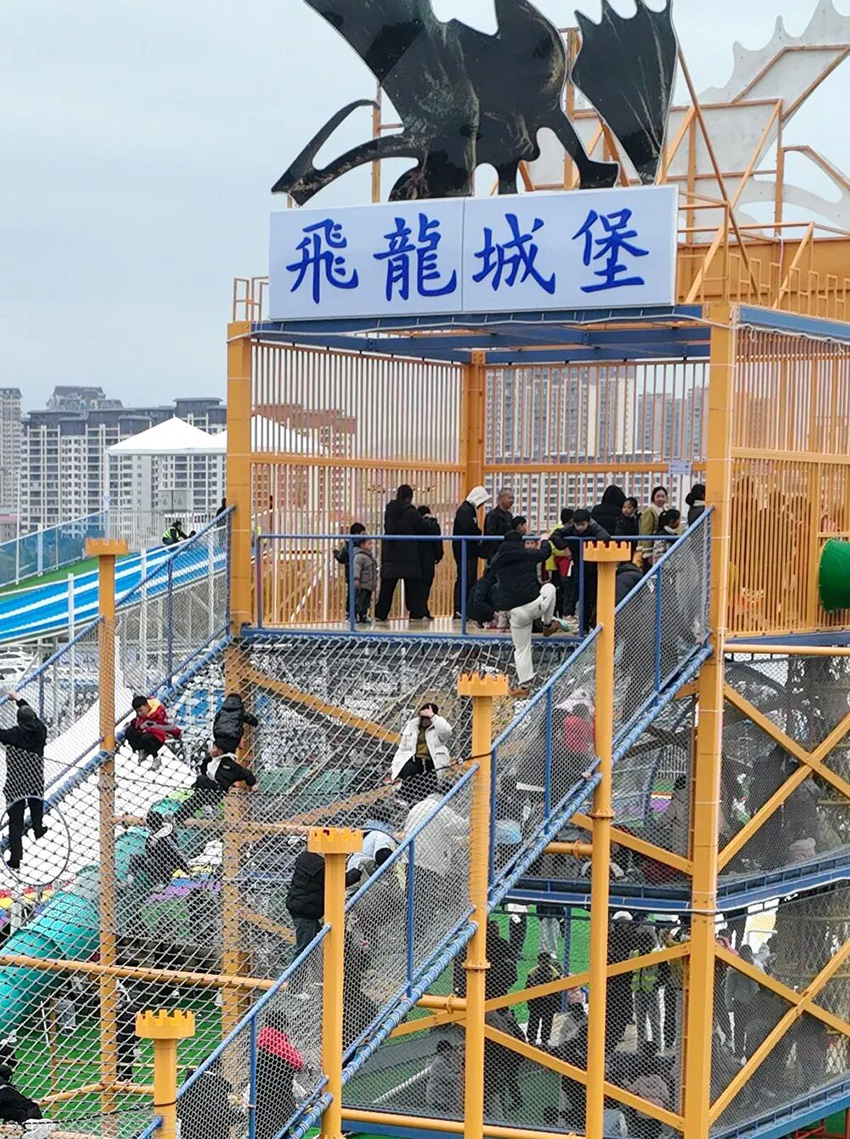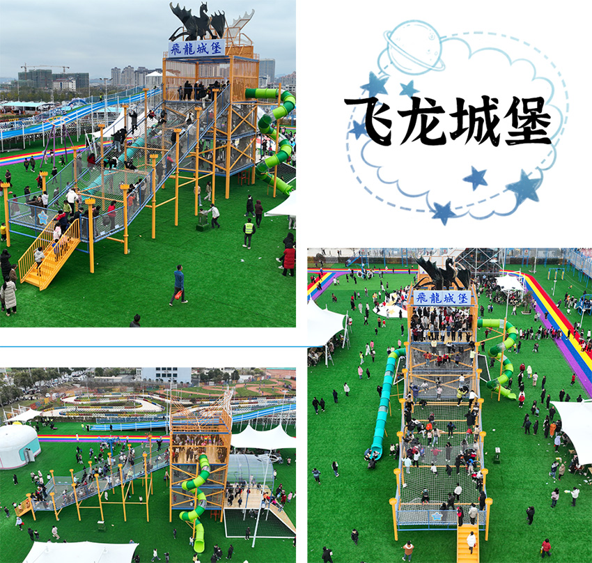 飛龍城堡:多層立體攀爬網(wǎng)、滑梯組合,培養(yǎng)孩子的勇氣與協(xié)調(diào)能力。