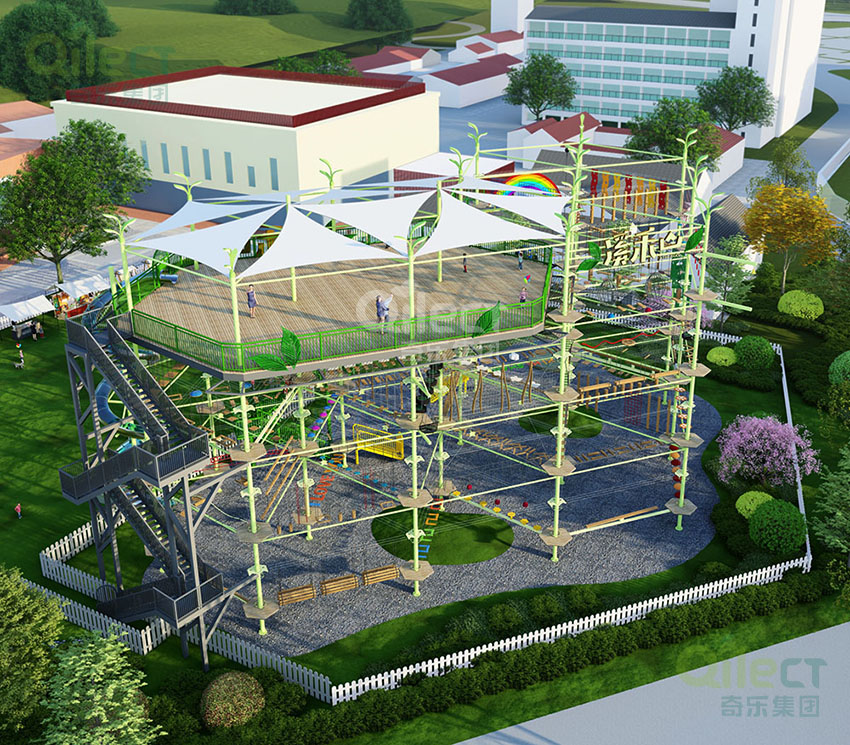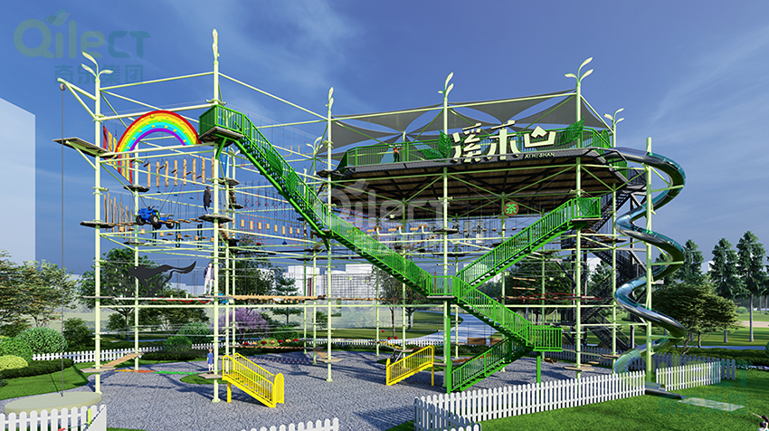 立體多層級挑戰(zhàn)系統(tǒng):融合攀爬網(wǎng)、懸空步道、速降滑梯等多元模塊,滿足不同年齡段的探險需求;