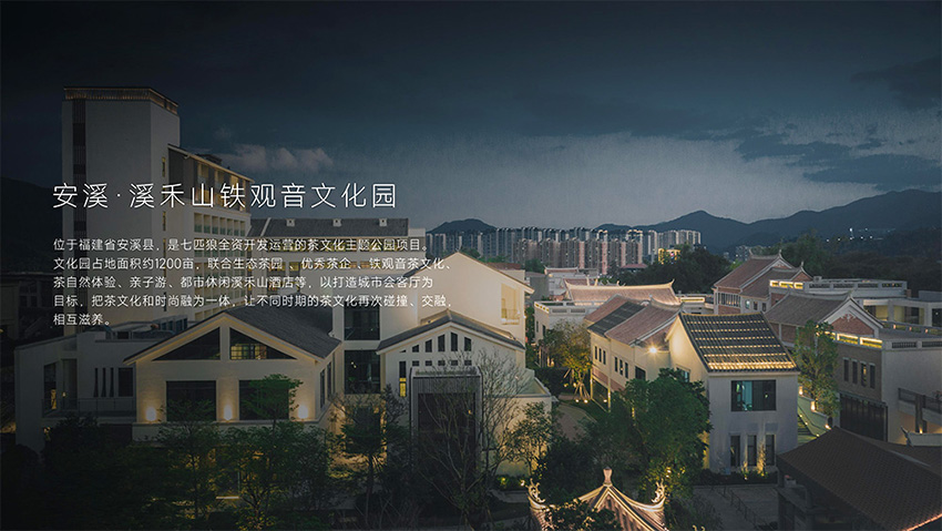 位于福建省泉州安溪縣,占地面積約1200畝,是七匹狼全資開發(fā)運營的集文化展示、觀光體驗、科普教育、休閑度假于一體,以鐵觀音茶文化為主題的大型綜合生態(tài)旅游示范區(qū)。