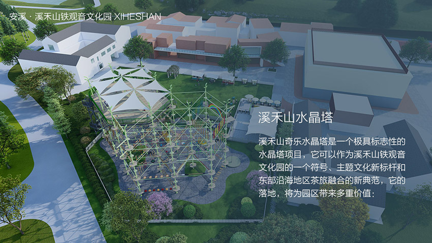 奇樂集團與七匹狼集團達成合作,為其旗下的安溪溪禾山鐵觀音文化園量身打造一座集拓展、美學(xué)與文化于一體的高空拓展水晶塔。