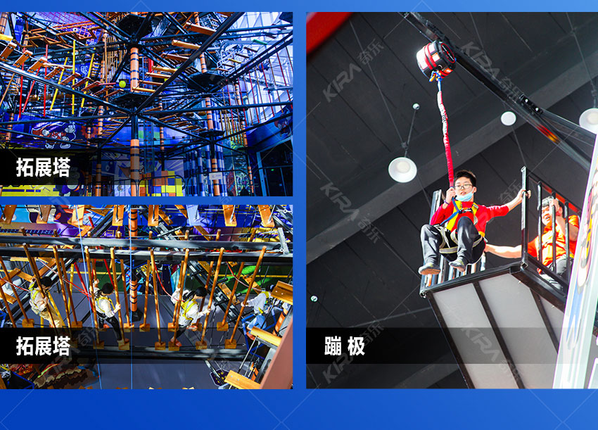 蹦床公園內除了以蹦床為主的區域外,還有拓展區域,其中拓展區內的項目有拓展塔、忍者拓展、瑪麗沖關、空中飛翔、蹦極、攀巖,螺旋滑梯等等。蹦床公園內的拓展塔,是一項高空拓展項目,適合喜歡攀爬拓展的朋友玩,適合比較大的孩子和成年人玩,具有一定的挑戰性,這個項目可以吸引那些喜歡刺激挑戰的朋友玩。蹦床公園內的忍者拓展,玩這個項目需要非常好的身體素質,具有很大的挑戰性,適合喜歡健身運動的人玩,可以在這個項目中挑戰自己的極限。瑪麗沖關,很適合團建互動類的活動,可以通過打卡來計算闖關的時間,看看游玩者那個用的時間比較少,這是一個適合團建活動的游戲。