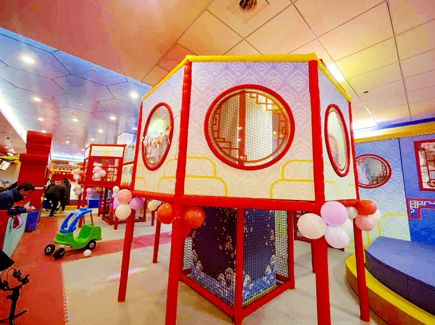 郯國古城游樂園以兒童游樂為中心,融入多種親子互動、少兒益智的優質項目,包括了滑梯、球池、蹦床、拓展、椰子樹、彈跳迷宮等項目,玩法豐富有助于兒童身心健康成長。國潮風主題形象地將帶有濃郁傳統節日文化色彩的喜慶元素展現出來,從而增強了樂園文化屬性。真正將中華文化精粹植入樂園項目中,為游客打造一個傳承悠久歷史文明的古風世界,使孩子們在玩樂中從小培養起對傳統文化的認同與自豪感。
