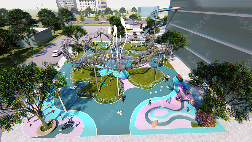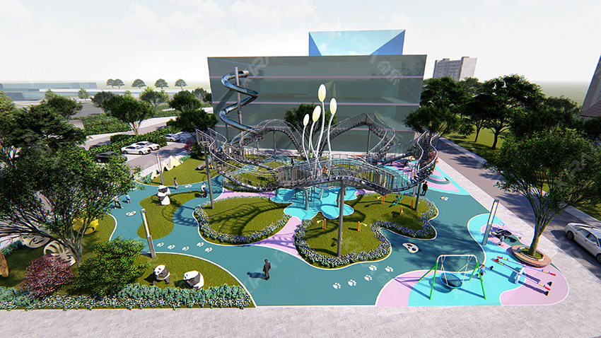 本項目適用于各種親子主題類的樂園,巧妙運用“熊貓”IP造型設計,集拓展、探險、滑道、飛索、蹦極、不銹鋼滑梯、攀巖、爬網等46種不同運動體驗的文化主題項目,結合“大灰熊”IP形象,融入相關設計元素,打造差異化的網紅IP主題性運動拓展營地綜合體。 在裝飾設計上采用竹葉和竹竿的綠色設計元素,以原生態、自然風格為基調,采用原木、繩網和不銹鋼等柔韌度好的生態材料。滿足大眾貼近自然、主題鮮明、寓教于樂的兒童素質訓練教育親子樂園的精神訴求。