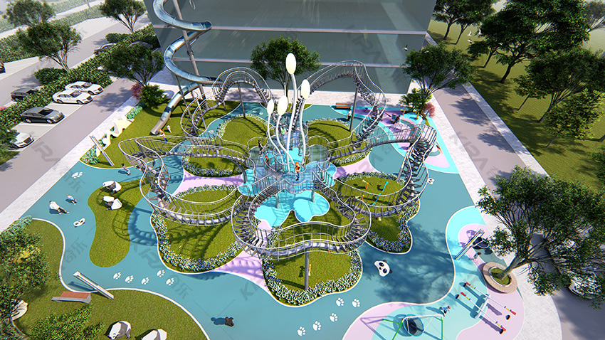 項目主色調以鐵綠色為主,場地空間布局層次分明、造型新穎規劃合理。以茉莉配色為設計理念,支持馬卡龍系列定制。內部游樂項目配置豐富齊全,包括滑滑梯、球池、椰子樹、彈跳迷宮、沙池、小蹦床等項目,造型設計活潑可愛充滿卡通風格,外觀色彩五彩繽紛能夠令孩子產生親切感,項目娛樂性互動性較強,清新而又舒適的游玩環境,能夠使孩子在玩樂中喚醒對美的渴望。