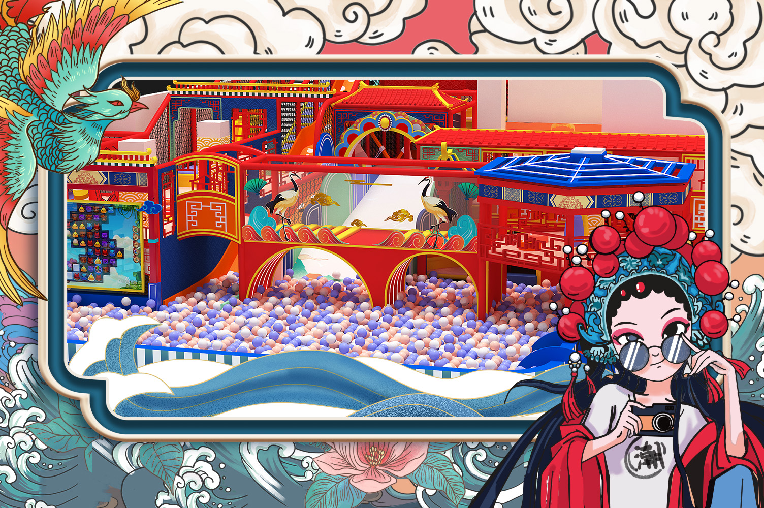濃郁的國潮風設計理念,將古典與現代元素融會貫通,為親子樂園注入華夏風骨,令游客在休閑娛樂過程中,感受中華文化魅力,塑造國風精粹、弘揚傳統文化。